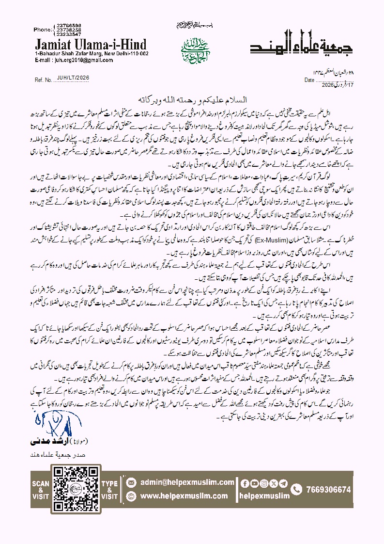 ہیلپ ایکس مسلم ویب سائٹ، جمعیۃ علماء ہند کے صدر حضرت مولانا سید ارشد